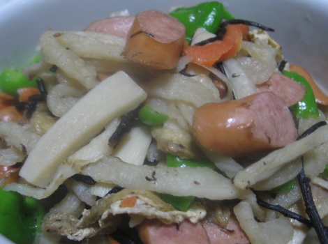 今回は、 ソーセージ の簡単 レシピ ・ ソーセージ と五島三菜の炒め煮です。おしゃべりクッキングの ソーセージ レシピ を参考に、 ソーセージ と五島三菜の炒め煮を作ってみました。五島山菜には、切干大根とにんじん・乾燥ひじきが入っている健康食品ですよ〜。